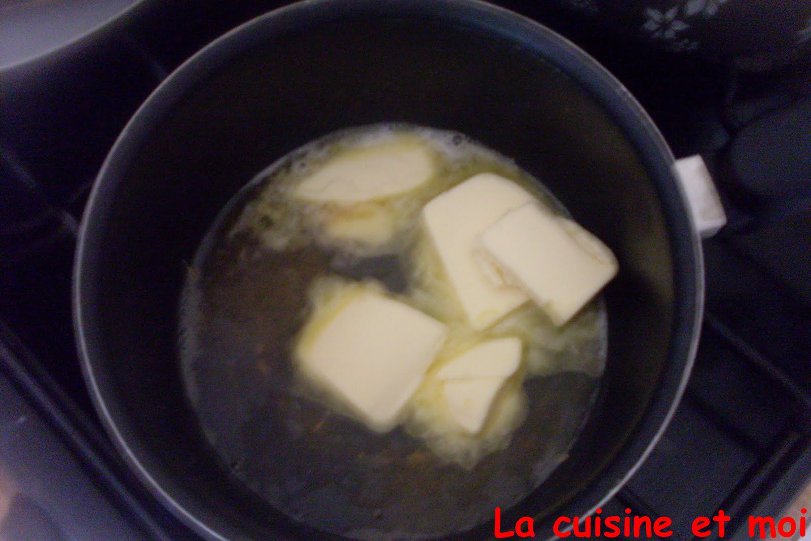 2°) Ajouter le beurre, le laisser fondre et retirer du four.